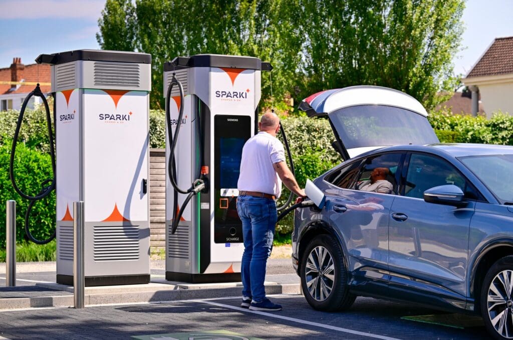 Het Belgische SPARKI opent vandaag zijn eerste ultrasnelle laadstation voor elektrische wagens in Deinze. In minder dan geen tijd wil het bedrijf het aantal ultrasnelle laders in ons land verdubbelen. Deze week alleen al worden vijf nieuwe locaties in gebruik genomen. Tegen eind dit jaar moet de teller op 200 laadstations staan. Vanaf 15 à 20 minuten kan tot tachtig procent van de batterij van een elektrische wagen worden opgeladen, afhankelijk van de laadcapaciteit van de wagen. Premier Alexander De Croo en minister van Financiën Vincent Van Peteghem mochten vandaag het eerste SPARKI-laadstation officieel openen.
